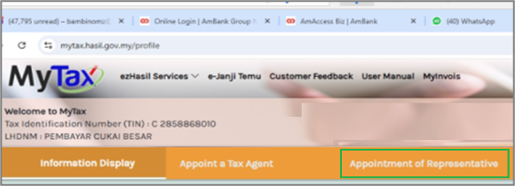 3. Appoint representatives by adding staff IC numbers under MyTax > Representative Appointment (you may appoint more than one).